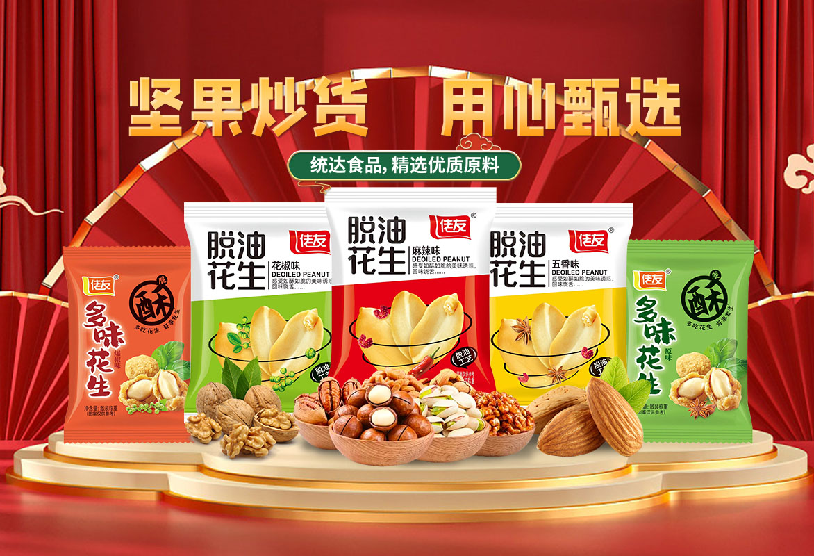 洛陽市統達食品有限公司創建于2013年,坐落于風景秀麗的嵩山腳下,東依省會鄭州、隴海、焦枝兩大鐵路在此交匯,西連高速,洛界高速,縱橫東西南北,207國道,交通便利。當地環境優美。經濟繁榮昌盛,實為興業辦企,鴻運福順的好地方。少林寺,白馬寺,龍門石窟,玄奘故里等名勝古跡星羅棋布,近在咫尺,盡展千年華夏文明?! ∥覐S是一家集生產,研制,銷售為一體的食品加工企業,總投資1500萬元,廠房占地面積5000平方米,員工100余人,其中技術人員20余人,年加工能力達1500余噸。公司以堅果炒貨為主導,自主三大品牌:統達牌、紅仁館牌、佬友牌和授權品牌速達,主要產品有酒鬼花生系列,麻辣花生系列,香辣酥系列,果仁裹粉類系列,怪味胡豆系列,蠶豆、青豆系列等多個品類。產品暢銷全國各地,深受用戶好評。產品選自上等原料經多次精選而制,秉承濃郁的特色風味,保留其原材料的營養和原汁原味,富含不飽和脂肪酸和人體必需的氨基酸和鋅元素,不含膽固醇,黃曲霉素,不添加防腐劑、著色劑;具有濃郁獨特的香味,是真正的“從土地到餐桌”的健康食品。產品特點:色澤金黃,顆粒飽滿,然后經多種工藝加精良的天然配料精制而成,鎖生產出來的產品既保持著產品的獨到的口味,又不失產品天然的營養成分,滋味純正,辣椒鮮紅食之麻,辣,香,酥,甜,口感獨特,食后滿口生香,欲罷不能。久食不厭,老少皆宜,居家旅游,佐食配茶,宴賓饋友之佳品,深受廣大顧客歡迎和贊揚?! ∥覀儗⒁跃康墓に嚕茖W的管理,嚴格的質量控制,優異的品質保障,以誠信,創新,勤奮,求實的企業精神,立于強者之林,迎接新的挑戰。以飽滿的熱情迎接與你的合作?! ”竟尽耙再|量求生存,以誠信求發展”歡迎有志之士加入我們的團隊,攜手共創美好明天!